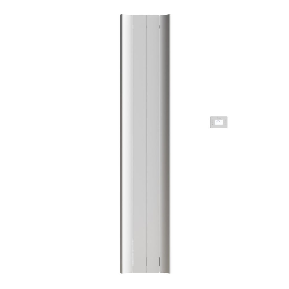The plug-in Carisa Boreas B aluminium vertical electric designer radiator features a unique, gently pinched profile and a slimline silhouette, bringing a soft, sophisticated focal point to your room.