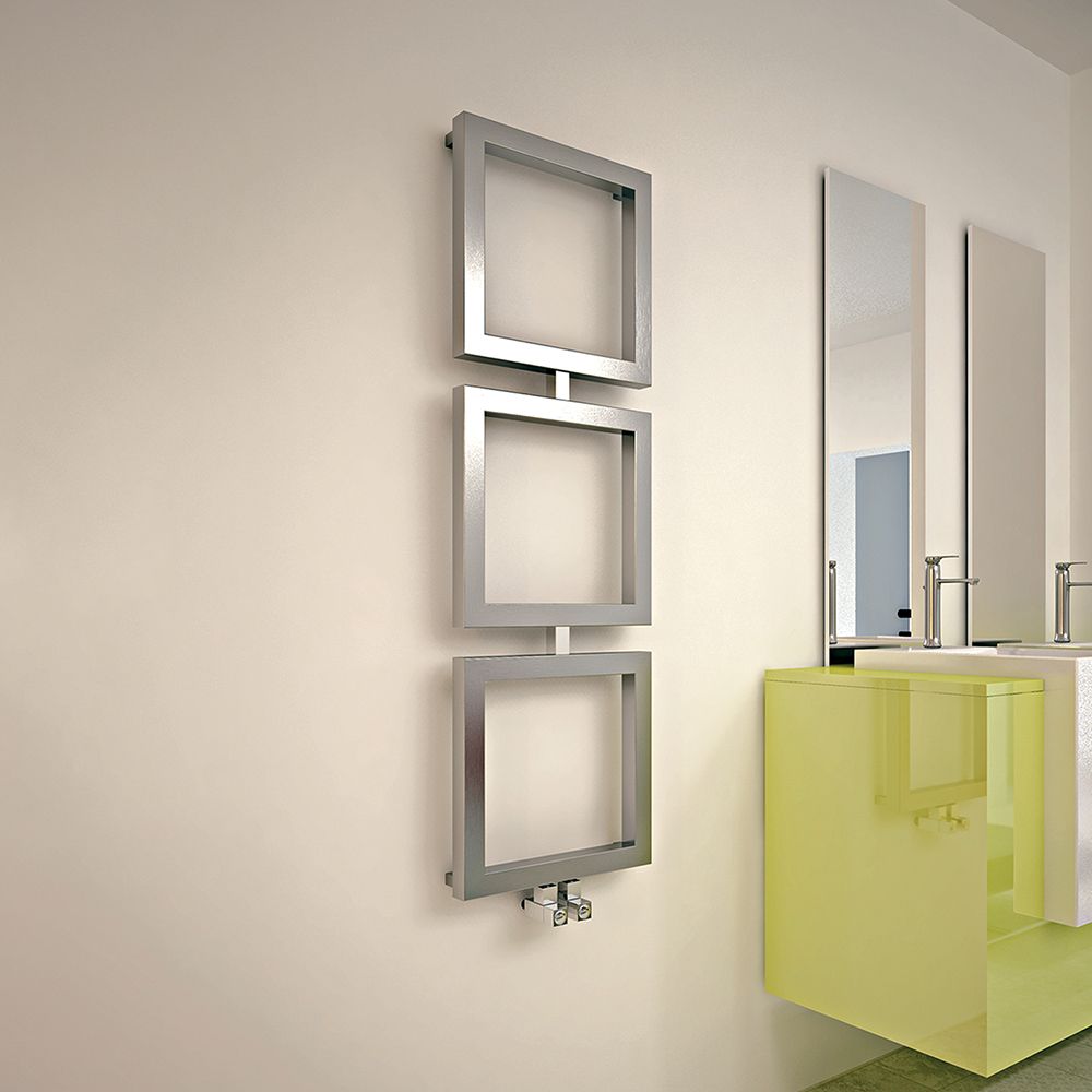 Elevate your bathroom with the striking design of the Carisa Ruma stainless steel designer towel radiator. Boasting excellent durability, this towel radiator features a bold, geometric design for the ultimate contemporary look. It has superior heat retention too, keeping your bathroom and towels sumptuously warm long after the heating is turned off.