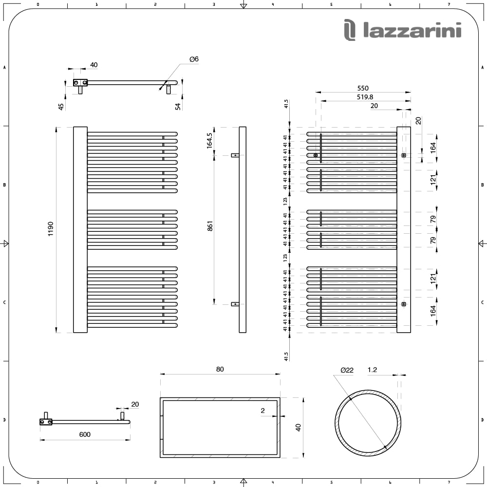 Lazzarini Way - Grado - Mineral White Designer Heated Towel Rail - 1190mm x 600mm