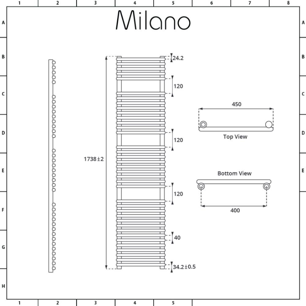 Create a stylish and modern look in your bathroom with the Milano Arno 1738mm x 450mm dual fuel bar on bar heated towel rail. Benefitting from a contemporary design that allows you to neatly hang and warm your towels, the towel rail benefits from an attractive white powder coated finish. The dual fuel functionality means that the towel rail can be used as part of a central heating system or using the 1000W Rotfil Heating Element.