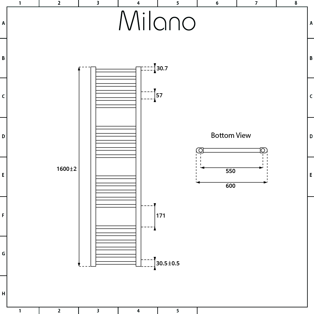 Milano Artle Electric - Straight Anthracite Heated Towel Rail 1600mm x 600mm