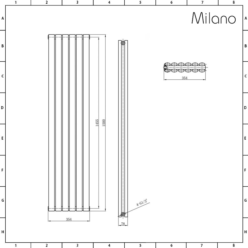 Milano Aruba - Silver Vertical Designer Radiator 1500mm x 354mm (Double Panel)