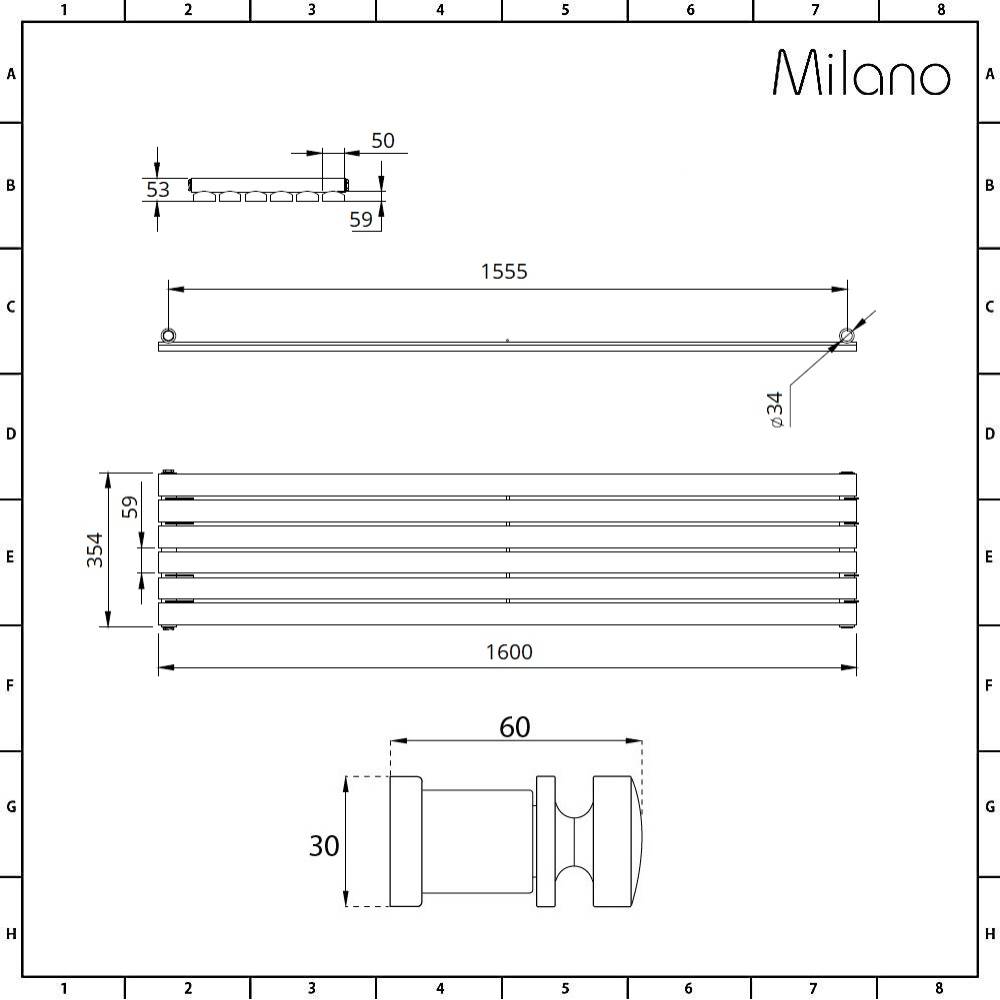 Milano Capri - Silver Horizontal Flat Panel Designer Radiator 354mm x 1600mm (Single Panel)
