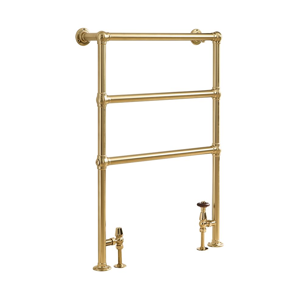 Milano Derwent - Traditional Minimalist Brushed Brass Heated Towel Rail - 966mm x 673mm