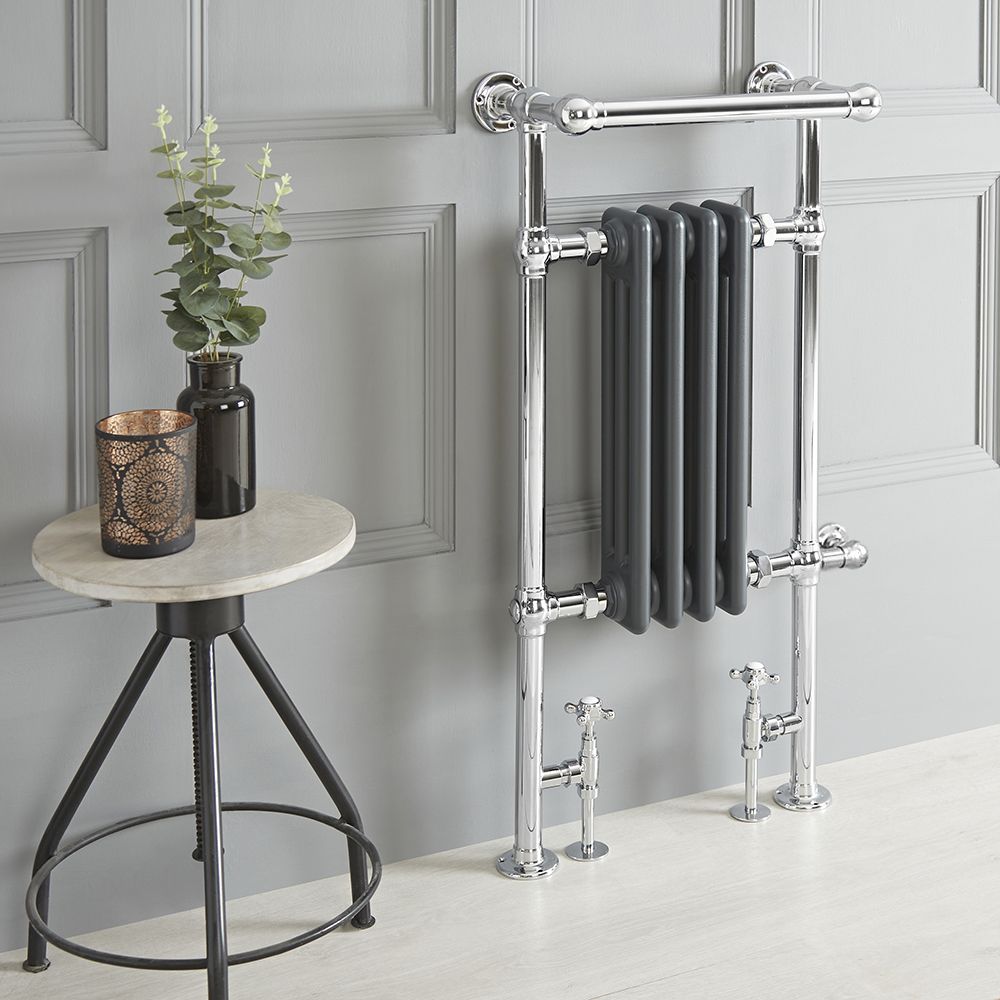 Create a stunning vintage look and keep towels luxuriously warm with the Milano Elizabeth 930mm x 450mm anthracite traditional towel radiator. This superbly functional dual fuel heated towel rail can be used with your central heating system or the electric, for ultimate control. It comes with chrome radiator valves and a 400W heating element.
