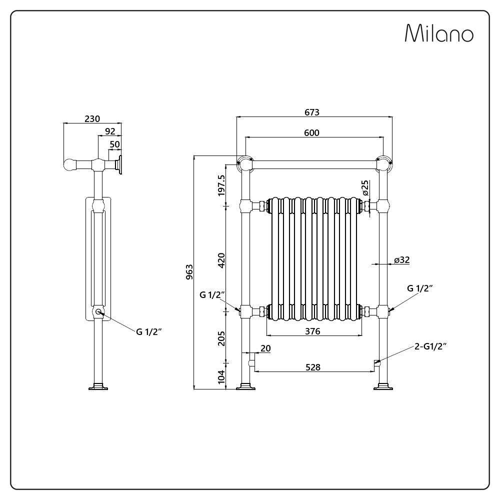 Bring a timeless feel to your bathroom with the Milano Elizabeth 963mm x 673mm heated towel rail. With an overhanging rail to hold your towels, this towel radiator features a vintage design and a brushed copper finish with a white column radiator insert for an elegant touch.