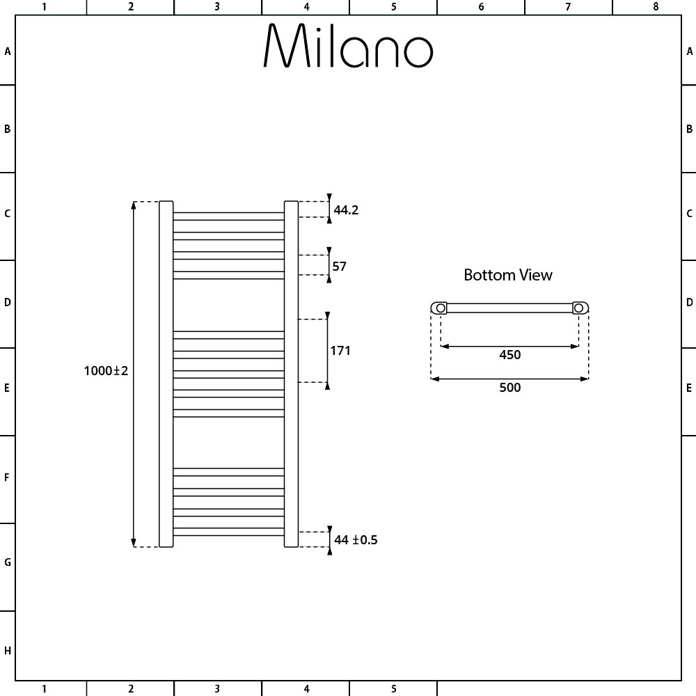 Milano Ive Electric - Straight White Heated Towel Rail 1000mm x 500mm