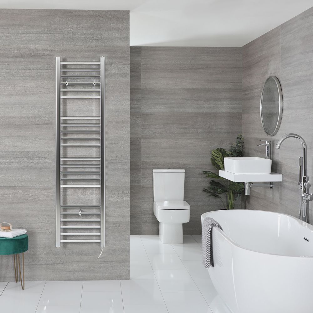 Milano Kent Electric - Straight Chrome Heated Towel Rail 1600mm x 400mm