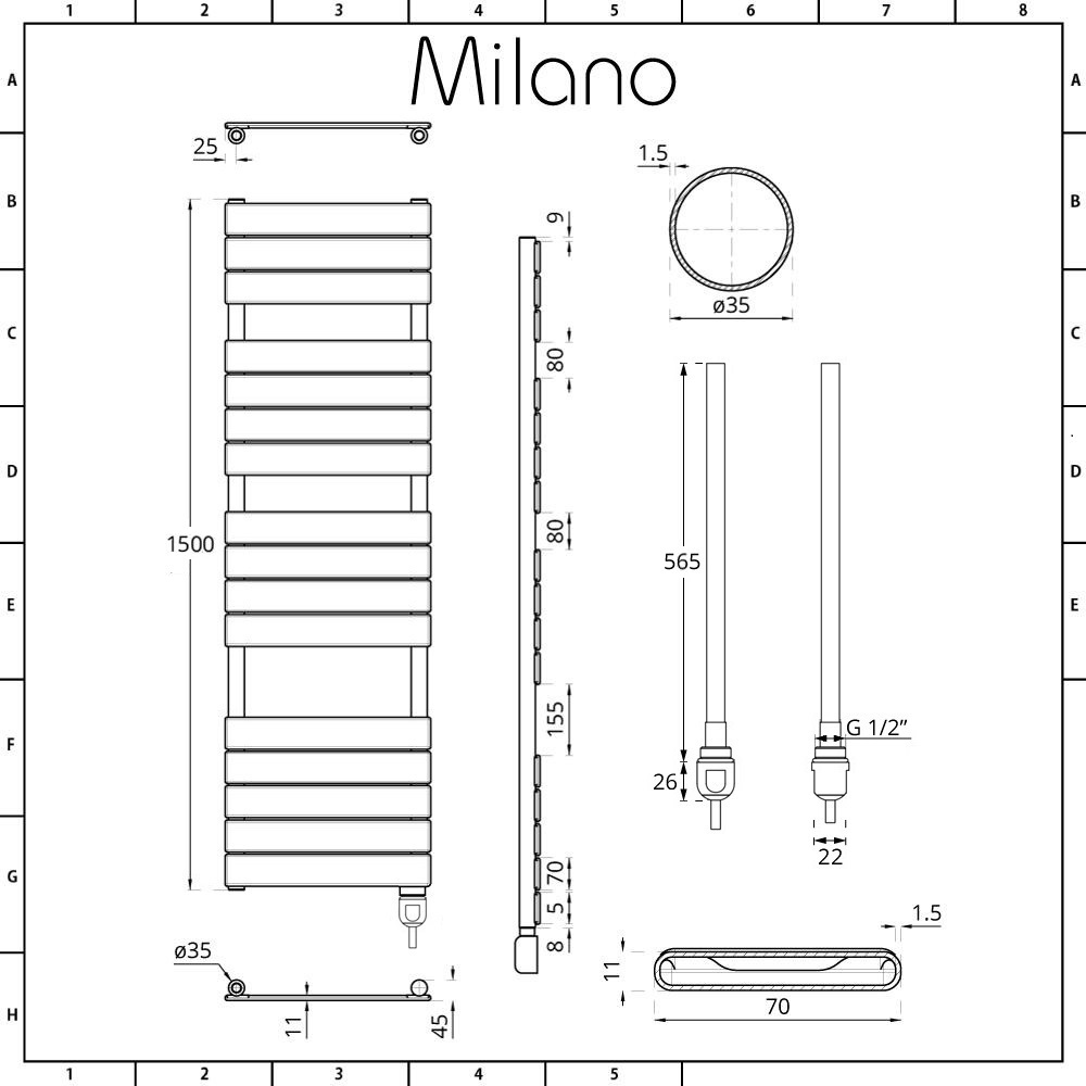 Enjoy sumptuous warm towels with the Milano Lustro 1500mm x 600mm black dual fuel heated towel rail. Sure to make a style statement in your bathroom, this heated towel rail will work off the central heating or the electric to give you the best of both heating options. It features stylish flat panels in a resilient matt black powder coated finish for a look that’s bold yet sophisticated.