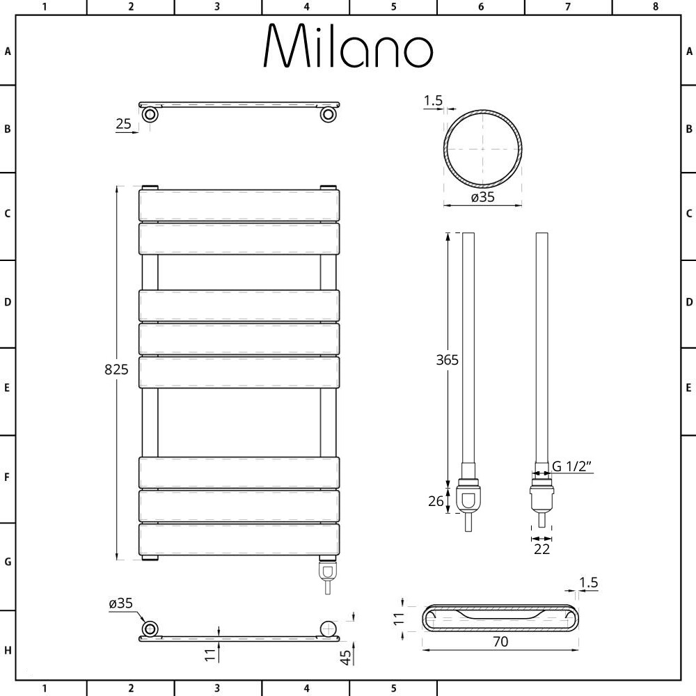 Bring a luxury feel to your bathroom and create a look that’s bold yet sophisticated with the Milano Lustro 825mm x 600mm black dual fuel heated towel rail. Seamlessly blending form with function, this heated towel rail features a hard-wearing matt black powder coated finish and sleek flat panels, as well as ample towel hanging space.