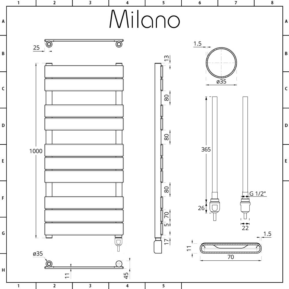 Bring designer style to your bathroom and sumptuous warmth to your towels with the Milano Lustro 1000mm x 600mm chrome dual fuel heated towel rail. With ample space for towels and a sleek flat panel design, this heated towel rail can be used with the central heating or as an electric towel rail, so you have the best of both heating options.