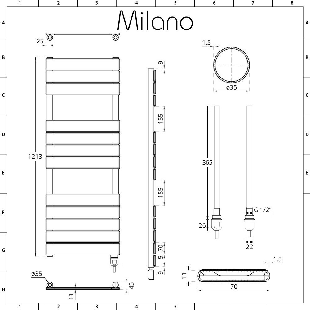 Enhance both the look and functionality of your bathroom with the Milano Lustro 1213mm x 450mm chrome dual fuel heated towel rail. Featuring sleek flat panels in a brilliant chrome finish, this designer heated towel rail can be used with the central heating or as an electric towel rail, so you have the best of both heating options for total convenience.
