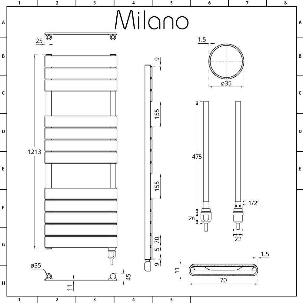 Bring a luxury feel to your bathroom with the Milano Lustro 1213mm x 600mm dual fuel chrome heated towel rail. With sleek flat panels in a chrome finish, this stylish heated towel rail has been created so you can use it with the central heating or as an electric towel rail for total convenience. It comes with an IP64 rated 600W heating element and dual fuel radiators valves.