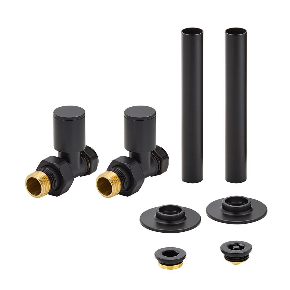 Milano - Modern Straight Radiator Valve and Pipe Sleeve Set - Choice of Finish