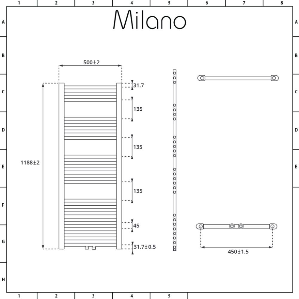 Creating a stylish and modern look in your bathroom, the Milano Neva 1188mm x 500mm dual fuel heated towel rail allows you to perfectly warm your towels ready for use. Accentuated by a sleek chrome finish, the towel rail will complement any contemporary décor. Heating can be efficiently achieved either through using your central heating system or the 400W Rotfil Heating Element thanks to the dual fuel functionality of the towel rail.
