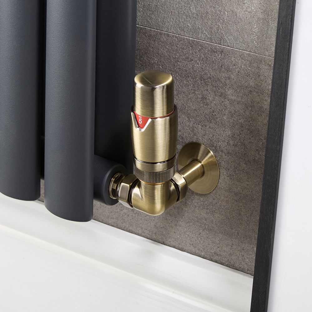 Milano - Thermostatic Corner Radiator Valve and Pipe Set - Brushed Gold