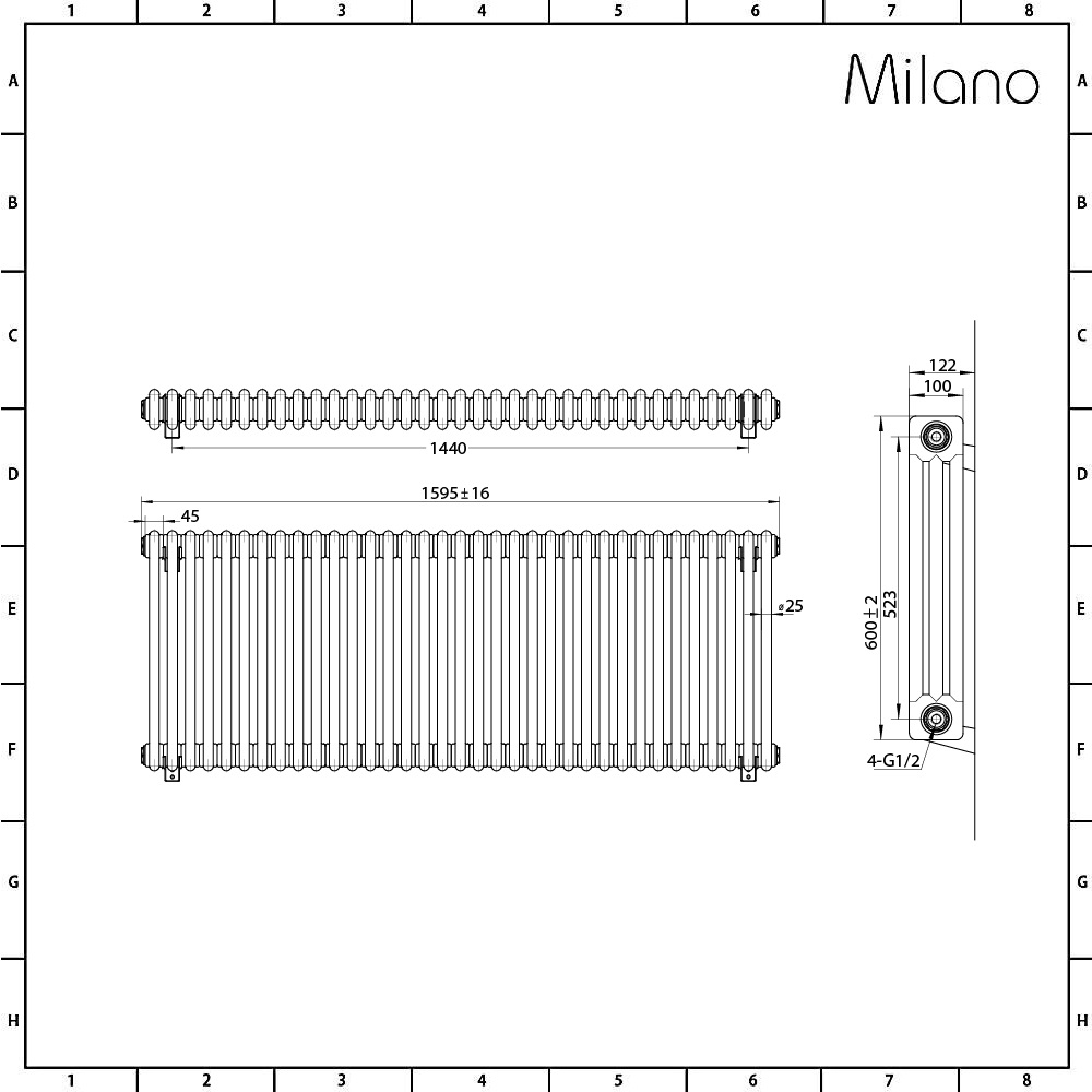 Milano Windsor - Lacquered Raw Metal Traditional Horizontal Triple Column Radiator - 600mm x 1595mm