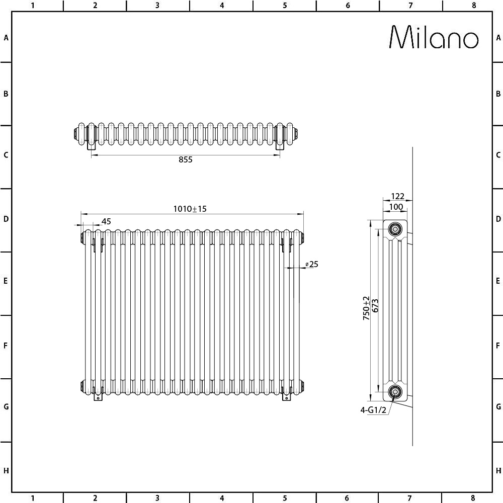 Milano Windsor - Lacquered Raw Metal Traditional Horizontal Triple Column Radiator - 750mm x 1010mm
