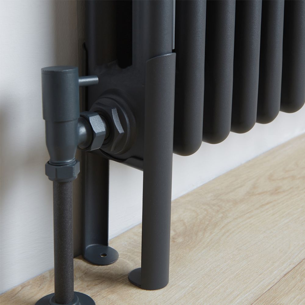 Create an even more stable and secure installation for the Milano Windsor traditional two column radiator with this pair of robust and sturdy floor-mounting feet. Designed to reduce the weight against the wall, these feet provide additional stability and support than wall-mounting alone can achieve. The feet feature a resilient anthracite powder coated finish to perfectly coordinate with the Windsor anthracite column radiators.