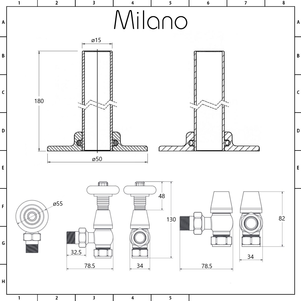 The valves and pipe connectors can be used with all Milano radiators and heated towel rails.