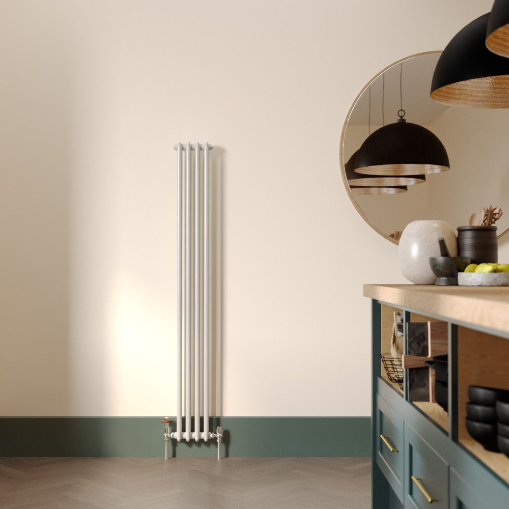 For a look that will never date this traditional white Milano Windsor double column vertical radiator is perfect for efficiently and effectively heating compact spaces thanks to its high heat output. Made from mild tubular steel, this cast iron style radiator has been built to stand up to the demands of the modern home and is suitable for all types of central heating system.