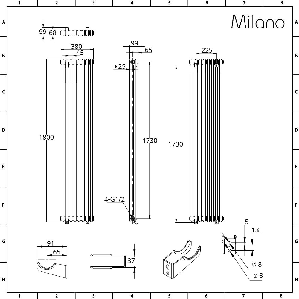 Perfect for creating a warm and welcoming feel in any room of your home this traditional Milano Windsor old school style column radiator will provide a very timeless look that will remain a favourite classic. The vertical design is ideal for making the best possible use of wall space and the high quality white powder coat finish will easily complement any setting. This period column radiator is made from tubular mild steel to ensure of long lasting good looks. Mounting brackets are included.
