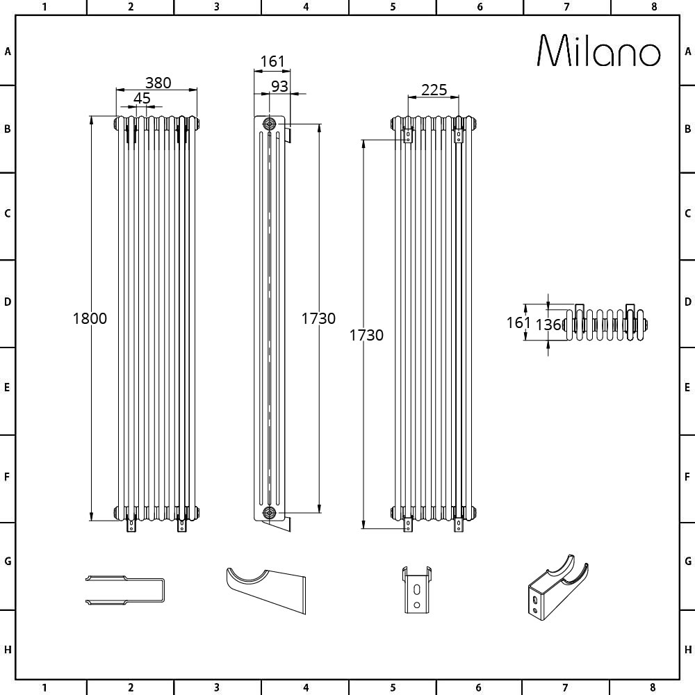 Milano Windsor - Vertical Four Column White Traditional Radiator - 1800mm x 380mm