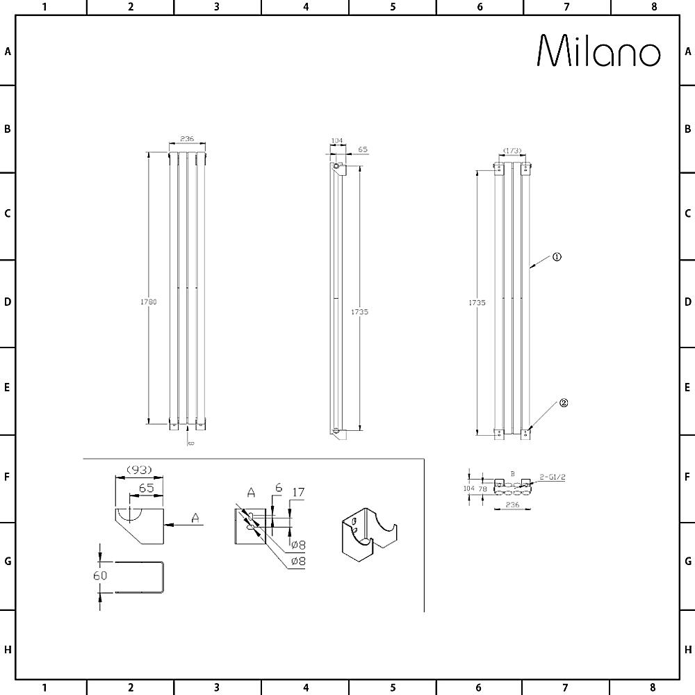 Heat your home in style with the powerful Milano x ECOSO Aruba 1780mm x 236mm double panel anthracite electric vertical designer radiator. The perfect space-saver, this electric radiator features a slim vertical design and oval-shaped columns in a resilient anthracite powder coated finish.