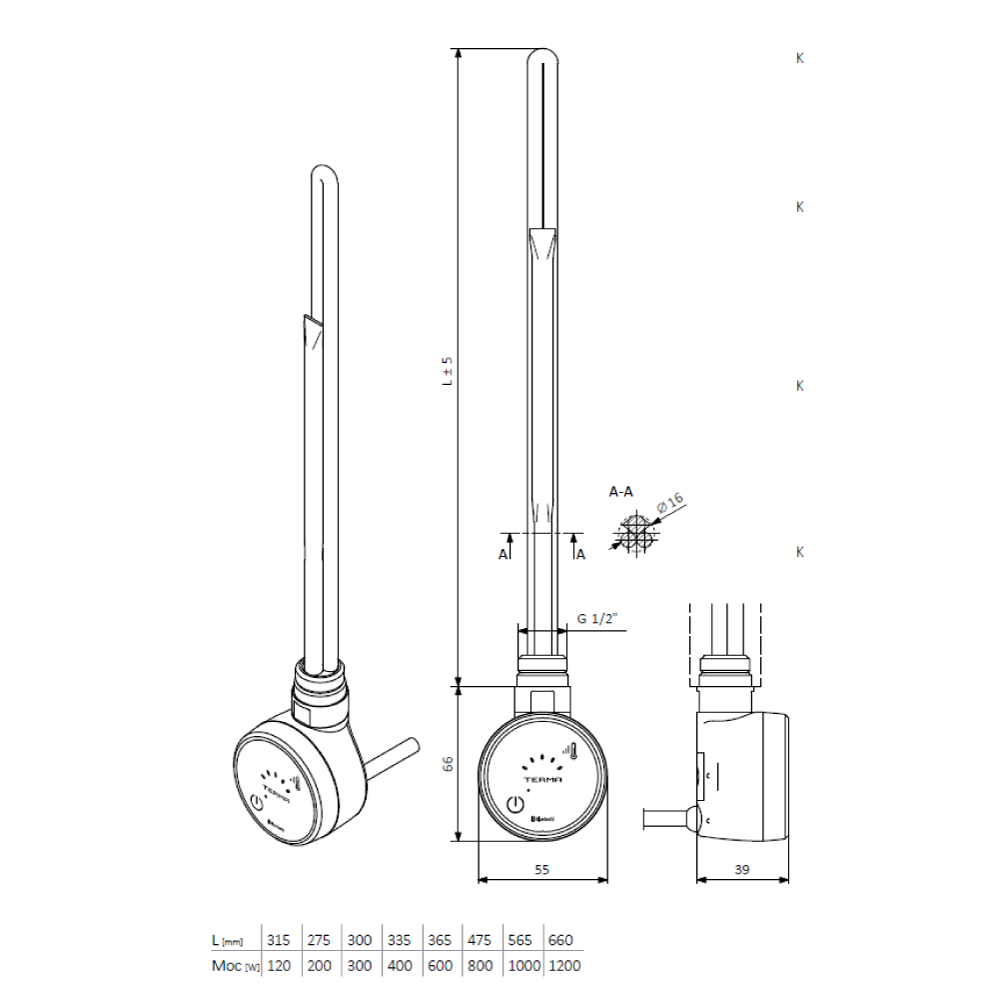 - IPX4 splashproof rated element can be fitted either side of the radiator