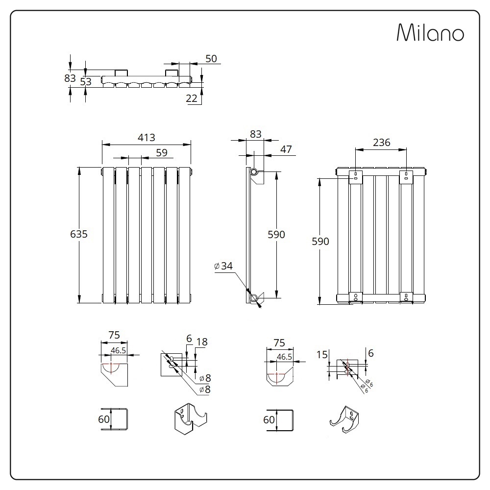 Whilst we do display measurements on the line drawings, due to the manufacturing process, there can be tolerances within them. We strongly advise not to drill any fixing holes for the brackets until you have received your radiator.