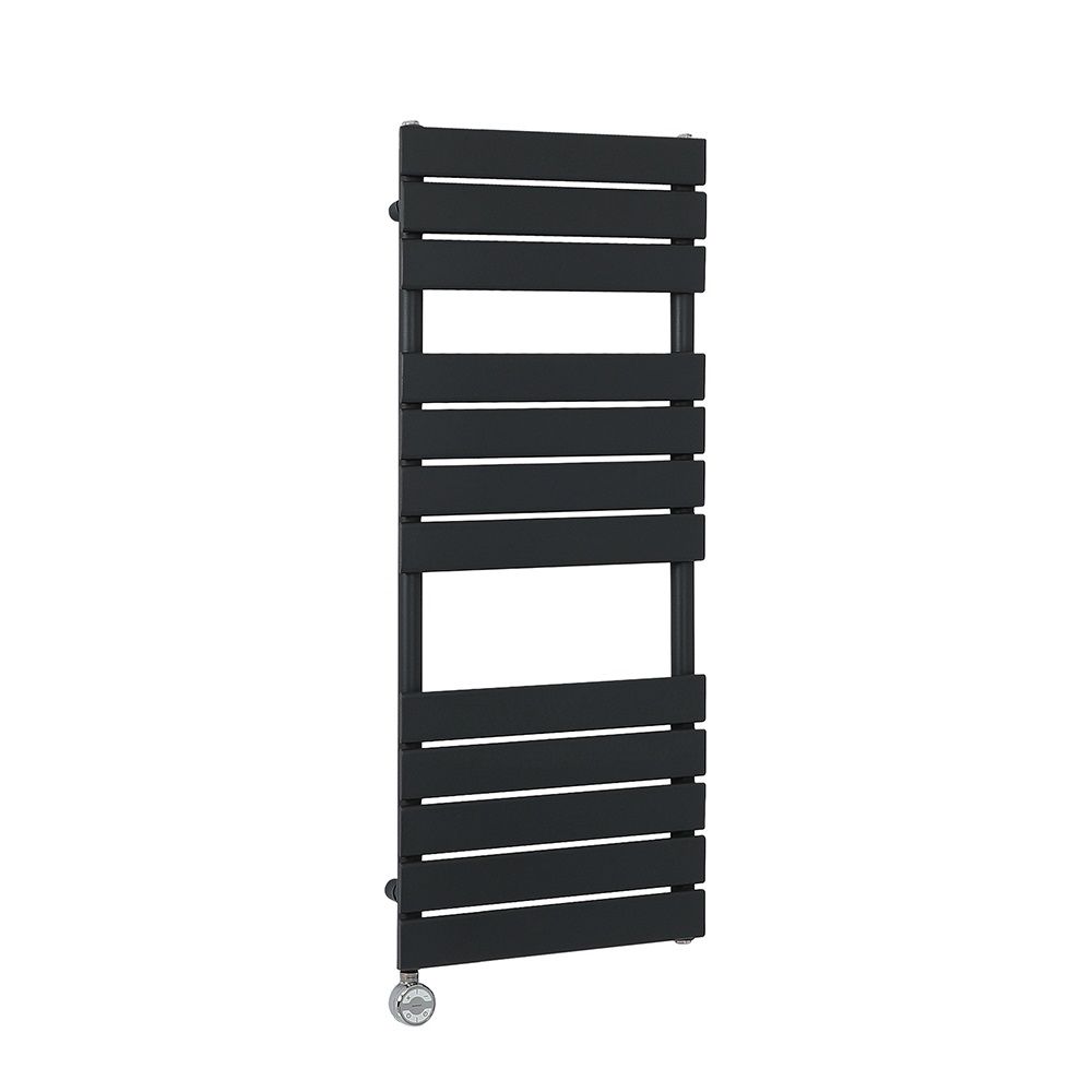 Milano x ECOSO Lustro Electric - Designer Black Flat Panel Heated Towel Rail - 1200mm x 450mm - with Thermostatic Wi-Fi Heating Element