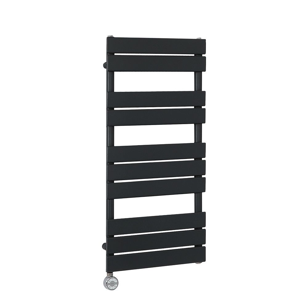 Milano x ECOSO Lustro Electric - Designer Black Flat Panel Heated Towel Rail - 975mm x 450mm - with Thermostatic Wi-Fi Heating Element